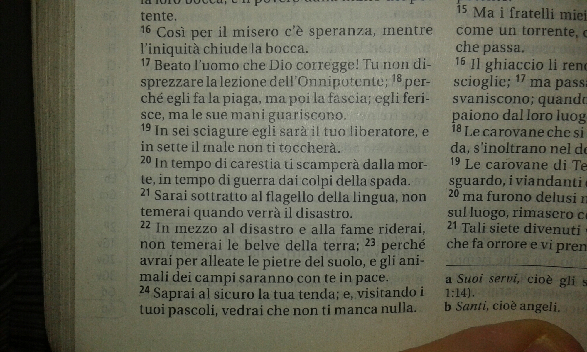 1. Quella di aprire la Bibbia a caso è stata anche una mia abitudine, qualche tempo fa… Da riprendere…