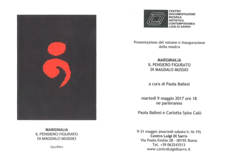 Marginalia. Il pensiero figurato di Magdalo Mussio edito da Quodlibet, a cura di Paola Ballesi, che ricostruisce la complessa vicenda di Magdalo Mussio grazie al contributo di numerosi studiosi ed esperti, e alle testimonianze di quanti hanno incrociato l’attività creativa e il percorso di ricerca della sua vita.