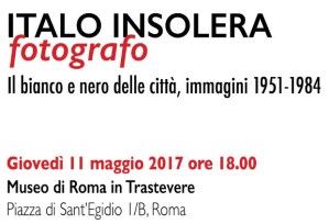 Il Museo di Roma in Trastevere ospita, dal 12 maggio al 9 luglio 2017, 50 immagini inedite, scattate da Italo Insolera tra l’immediato dopoguerra e gli anni Ottanta. La mostra, curata daCristina Archinto e Alessandra Valentinelli, è promossa da Roma Capitale, Assessorato alla Crescita culturale-Sovrintendenza Capitolina ai Beni Culturali, servizi museali di Zètema Progetto Cultura.