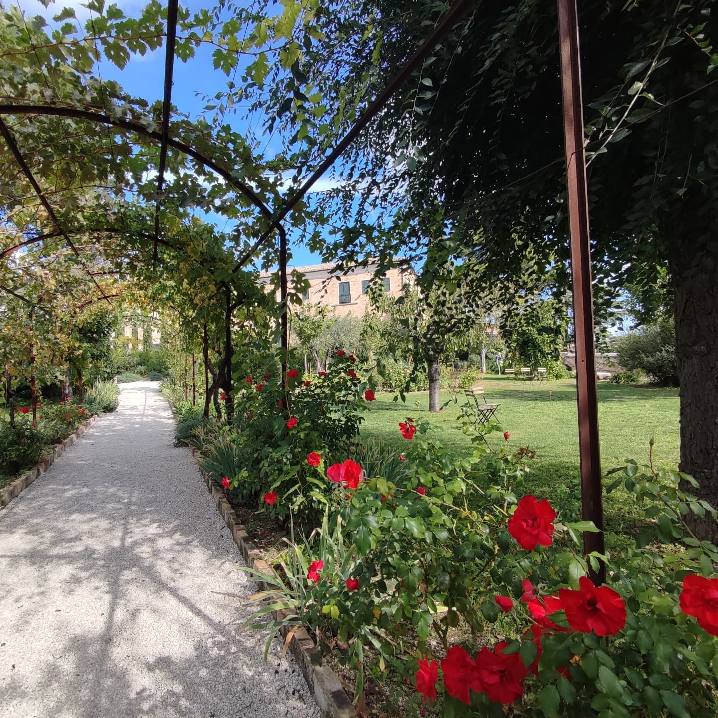 Lo spazio ha orto con una biodiversità strepitosa: ci sono dei vitigni sconosciuti che l’Università Politecnica delle Marche sta cercando di studiare. Ho scoperto che il tagete preserva dall’attacco dei parassiti e ho avuto conferma che le piante di rosa alla base delle viti sono sentinelle che preservano le reti del frutteti.