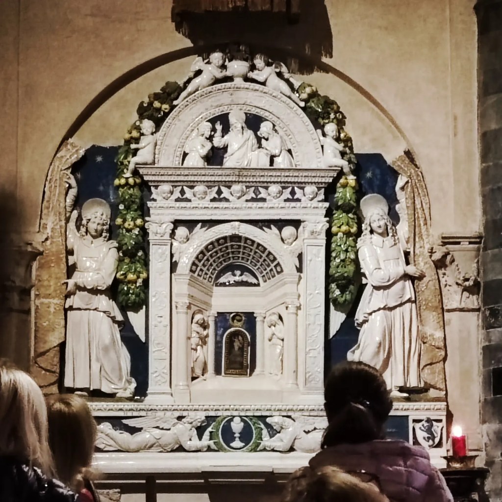 Non mi era mai capitato di vedere dal vivo un lavoro di Giorgio Vasari – e scoprirlo così è stato magnifico; come lo è stato essere riuscita a identificare da sola una scultura dei Della Robbia, ma non sapevo in quel momento a quale dei diversi protagonisti sia stato attribuita la produzione di questo tabernacolo che oggi l’internet dice essere di Andrea.