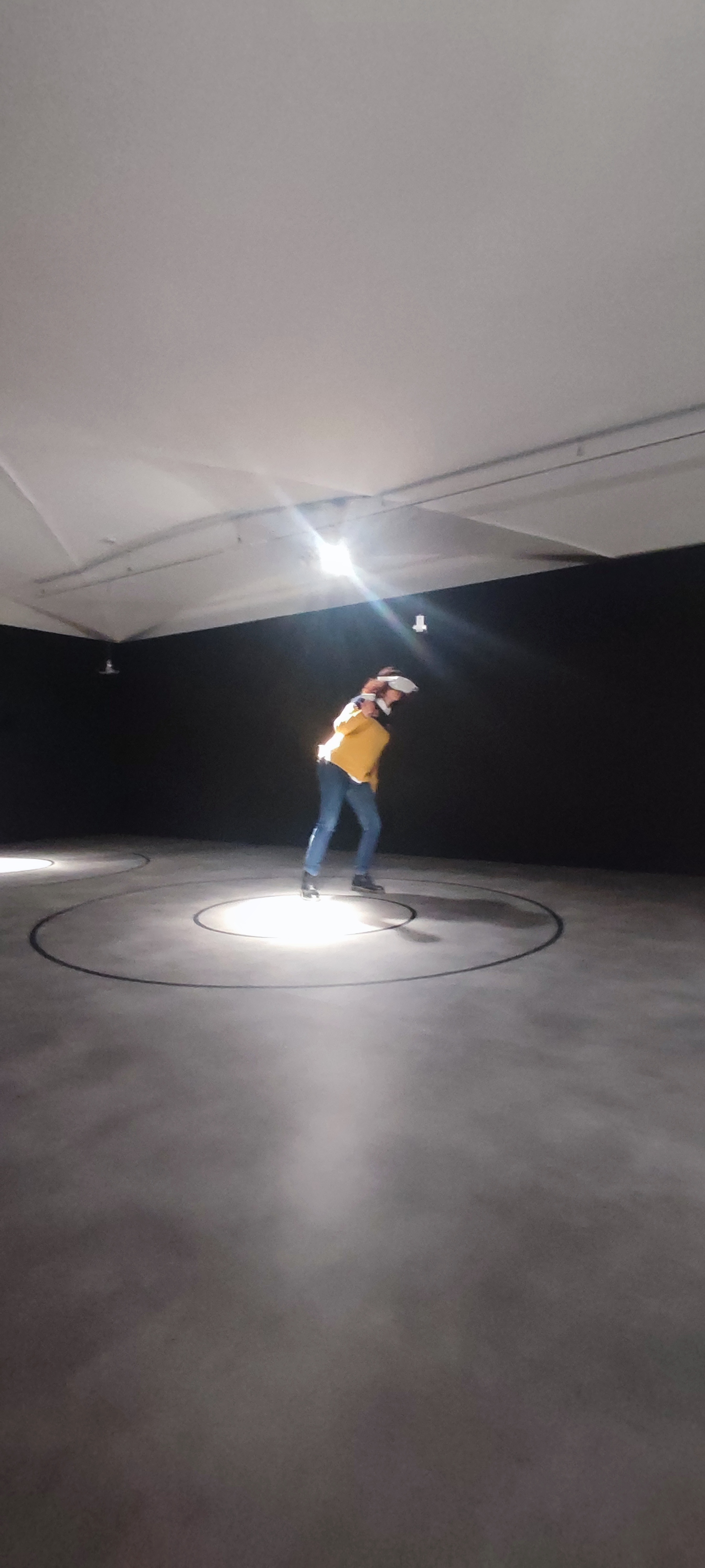 Nel piano sotterraneo della Strozzina il visitatore entra realtà virtuale e anche lì il movimento potrebbe essere apparente e non completo. Se ci si pensa bene è la mente a stabilire un confine, dove collocarsi: si è a conoscenza del fatto che si è immersi in qualcosa dove il corpo stesso è parte di questa ricerca, ma essa è bloccata dalle possibilità di incontro con le persone. Nella virtualità, nel comprendere dove si è e che cosa si è dentro quella nuova condizione spazio- temporale che gestisci tu, con le tue stesse mani, non c’è ancora periodo di relazione e socialità con gli altri eppure non siamo siamo già nel metaverso?