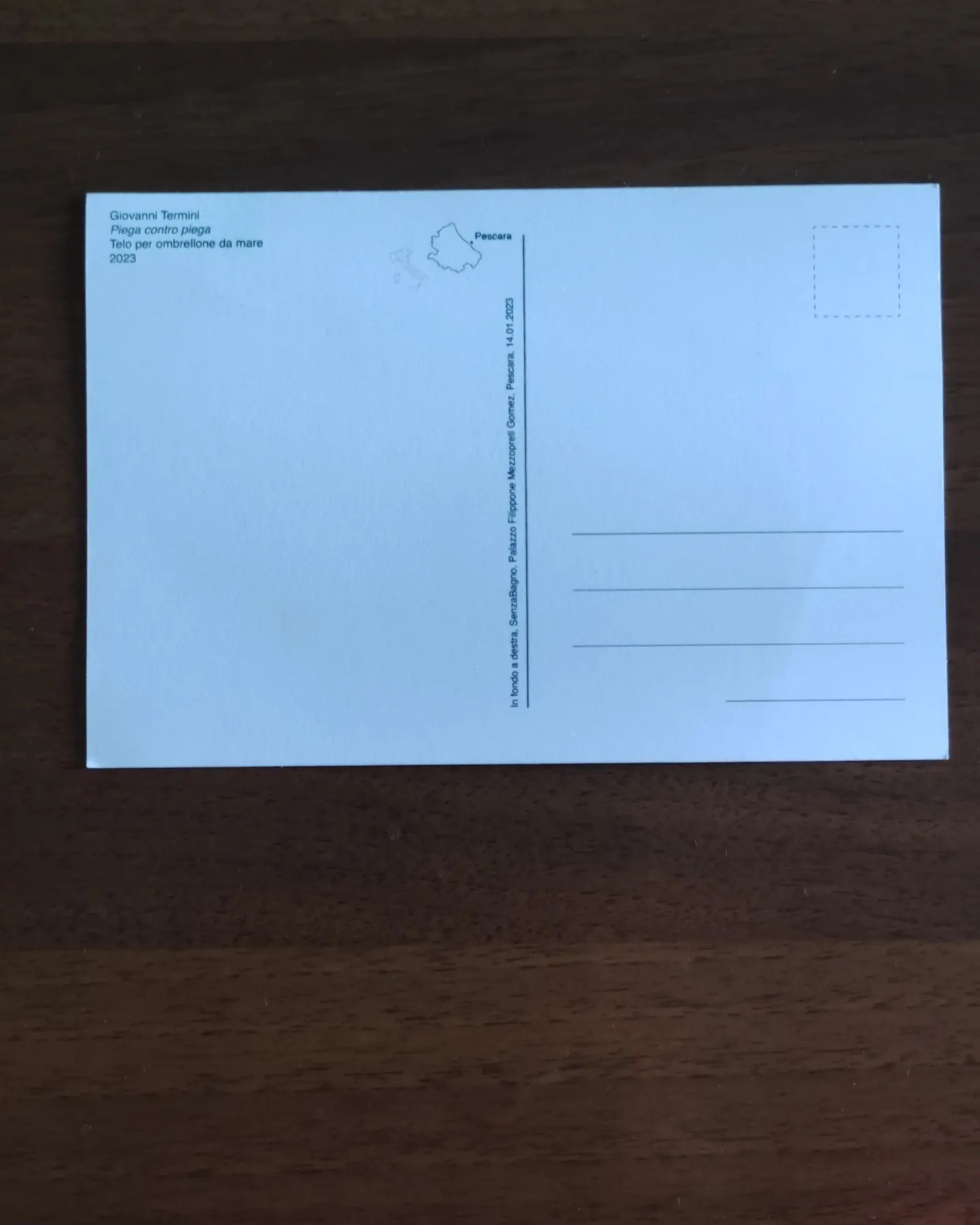 La mostra è stata corredata da una cartolina come una sorta invito alla costruzione di un nuovo immaginario.