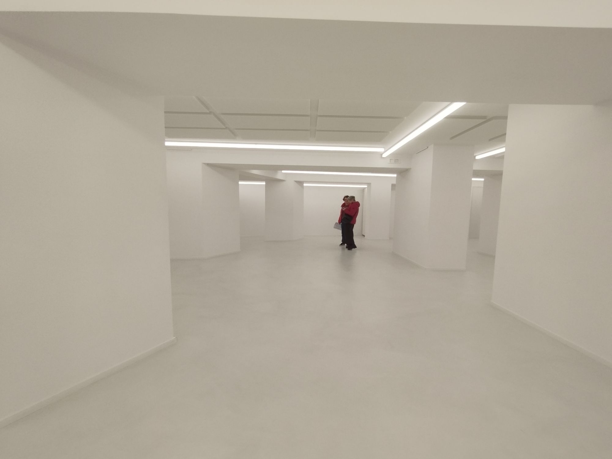 Non è la prima volta che la Fondazione La Rocca sceglie di dividere in due l’ambiente espositivo, separando nettamente il percorso del visitatore in due sezioni distinte. Qui il passaggio da una dimensione all’altra è netto: l’ingresso alla fondazione introduce lentamente alla mostra, ma poi si verifica una frattura. Nel cuore dell’ambiente, la separazione dallo spazio esterno è totale e lo spettatore si ritrova isolato, immerso nel bianco che annulla ogni riferimento visivo. Non c’è più alcun punto di ancoraggio narrativo, nessun contesto che possa guidare lo sguardo, solo il potere della luce che dissolve i volumi e rende la percezione dello spazio incerta. È proprio in questa sospensione che il profumo, con la sua capacità di saturare l’aria senza lasciare tracce visibili, diventa l’unico elemento tangibile. Il freddo, che pervade l’ambiente, accresce la sensazione di distacco: il grado ambientale più basso rende quasi impercettibile la temperatura, mentre il corpo avverte una sensazione di estraneità e isolamento. L’assenza di calore enfatizza la percezione di una realtà distorta, dove la mente è costretta a focalizzarsi su ciò che è invisibile, ma presente.