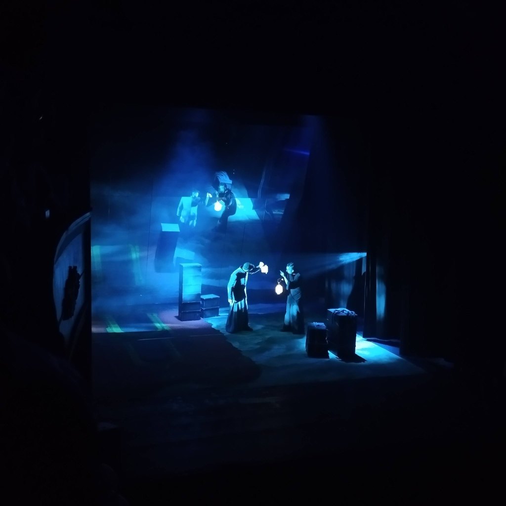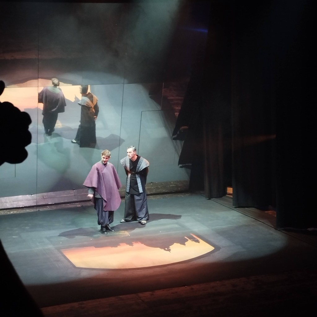Lo spettacolo si apre con tempi lenti e pochi agganci scenici, ma la parte finale raggiunge un’intensità coinvolgente. La scenografia è minimale, con un uso significativo degli specchi, che amplificano il tema del doppio e dell’inganno.